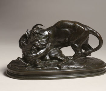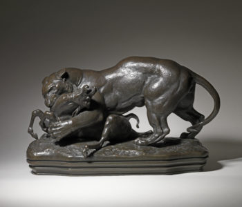 As the father of the ‘Animalier’ movement, Barye spawned many imitators, yet, his unique style and variety of subjects made his work highly sought after not only in France but also in America. Both during and shortly after Barye’s lifetime a number of large and important collections were formed in the USA, the most notable being the aforementioned Walters Art Gallery collection. From humble beginnings as a metalworker, Barye reached the heights of artistic development and success in a career spanning 56 years. Barye died in Paris in 1875 at the age of 79.