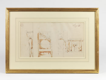 Carlo’s exotic ornamentation, coupled with his sometimes opulent, sometimes austere elegance of form, place him on a par with Mackintosh, Tiffany, Dresser and Lloyd-Wright amongst others, who were his co-exhibitors at the great world fairs of the early twentieth century. It is Bugatti’s furniture, in wood; leather, vellum and metals for which he is perhaps best known.