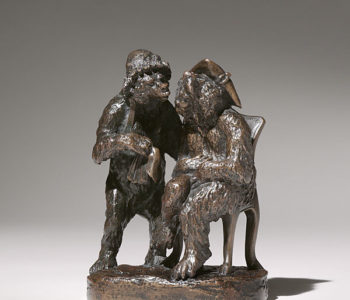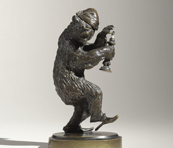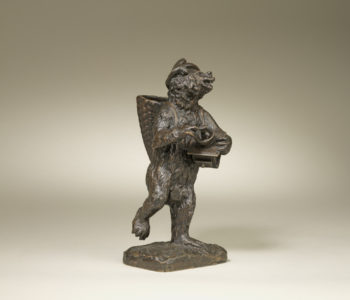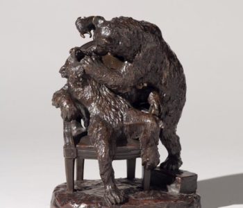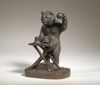 Fratin’s depictions of the anthropomorphic bear epitomise this humour. He modelled over fifty bears in a variety of human poses and activities. The bear however, did not feature prominently in the fashion for anthropomorphism, nor in nineteenth century art in general, as it was perceived to be a rather course, humorous subject. In depicting the bear during this period, Fratin shunned the conventions of the Salon to depict lofty, worthy and noble animal subjects. His bears sculptures are now highly collectable and are testament to his satirical humour and sharp modelling skills.