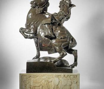 Although his parents came from Yorkshire, Gilbert and his brother and sisters were brought up in the St John’s Wood area of North London, where they would have frequently witnessed troops of cavalry horses from the nearby barracks. Several of his earliest sculpted reliefs done in the 1880s and ‘90s, and strongly influenced stylistically by the work of Randolph Caldecott, depicted horses in procession very much as he would have seen them as they were being exercised through the local streets. Horses, whether actual or mythical feature heavily in his work.