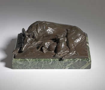 Pallenberg’s sculptures always remained very close to nature. Quite often, it is possible to detect the individual animal that he took as his model. He did not want to create a stereotyped representative of any species, but mostly made actual portraits of a specific beast. The range of animals he depicted is vast, including many rare and endangered species. Horses, big cats and bears fascinated him particularly. His oeuvre encompasses single animals as well as groups of two or more, shown at rest, playing, fighting or hunting – an exceptional diversity in the work of one artist. The sculptures are precise depictions of the animals’ anatomy and movements as well as their behaviour. Pallenberg’s closeness to nature repeatedly led to negative criticism as he was accused of mere mimicry. But, regardless of these reproaches, he developed a high reputation and received much acknowledgement, not only from scientists, but also for the artistic achievements in his sculptures. Various awards and prizes decorated his studio, where Pallenberg worked amongst many live animals, including a tame lion and a wolf. He died in Düsseldorf on 26 June 1946.