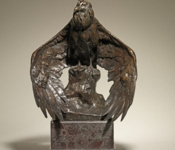A talented and prolific sculptor whose work, which includes painting and graphics, is still far too little known. After successfully studying at the Roeselare and Antwerp Academies (1887), he received a gold medal for a monumental bronze, Samson killing the lion, in 1890. From that year on, his work appeared regularly in exhibitions at home and abroad. Although not an innovator, he worked in every genre and mastered every technique and material. He was one of the first in Belgium to carve statues in ivory (1893), including an exceptionally refined Diana which was bought by the Antwerp Royal Museum of Fine Arts, which also acquired his spectacular bronze Vulture defending its prey a year later.