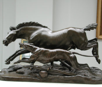 Models of different breeds of dog were as well as birds Moigniez’s most favoured and popular subject. He appears to have concentrated particularly on the pointer and setter breeds and to have modelled many individual characters, perhaps taking dogs he knew as his subjects.