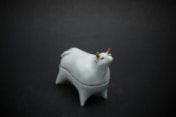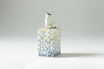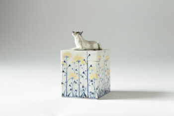 Fujiyoshi’s artwork is based on the inherited Japanese culture of traditional handicrafts known as Hizen-touji, the traditional technique of porcelain making which has been based in the northern part of Kyushu, called ‘Old Amari’ or Arita’, for hundreds of years. His modern take on the figures and boxes produced there over the centuries, uses the same modelling and porcelain making skills, but adds his own special wit and love of the natural world to give us his unique covetable creations.