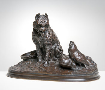 Known as the Landseer of sculpture, Mene’s work was as popular during his lifetime in England as he was in France, even though he never actually visited these shores. His sculptures capture with great elegance everyday scenes of predominantly domestic subject matter. His attention to detail and anatomy was matched by the care with which they were cast in his own foundry. He was the pre-eminent member of the group of sculptors during the middle of the 19th Century known as “Les Animaliers”.