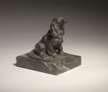 From 1899 to 1907 his financial circumstances seem to have improved: after initially exhibiting waxes and subsequently plasters, he began to show small bronzes in 1907. These were probably orders from wealthy collectors who wanted a portrait of a dog or a horse, both subjects at which Paris excelled and on which he was soon concentrating exclusively. He sculptures of the equine form beautifully depict the tension, exertion, and strength of the beast, even when portraying working animals at rest.