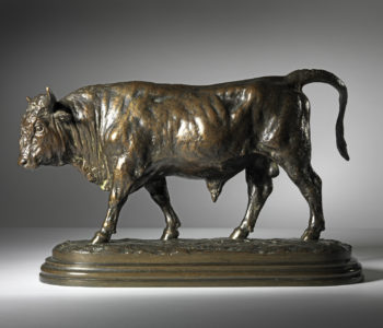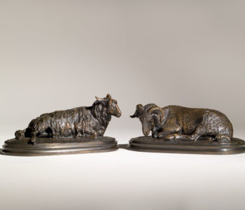Rosa Bonheur is classified as an Animalier sculptor on the strength of under a dozen works, mostly modelled prior to 1845, when she won the Gold Medal for painting at the Salon. At this time, she received an important commission from the State, and as a result her celebrated career as a painter began. The admiration for her work and the esteem in which she was held was unusual for a woman in the nineteenth century. Often considered to be the ‘Landseer’ of France, she received many decorations and awards. She was on personal terms with the Crown and officials of State and her home was protected by the army during the siege of Paris under orders from Prince Frederick. In England, too, she enjoyed the friendship of Queen Victoria and other noble patrons.