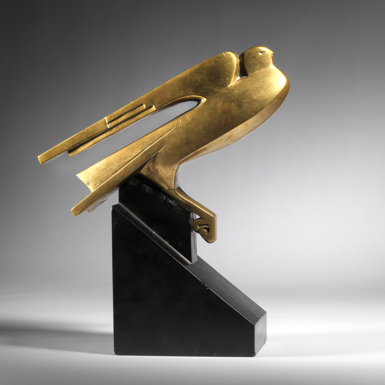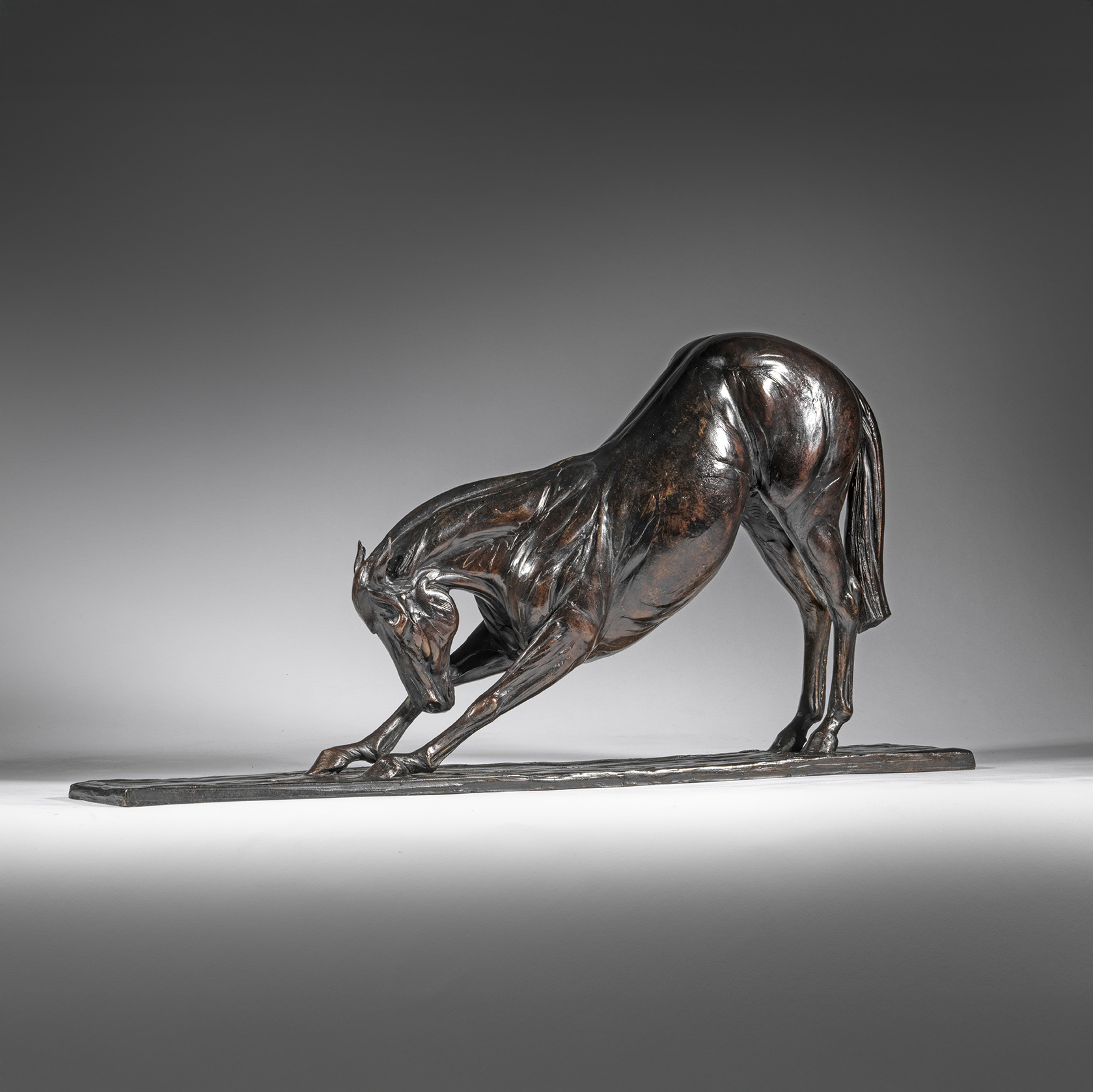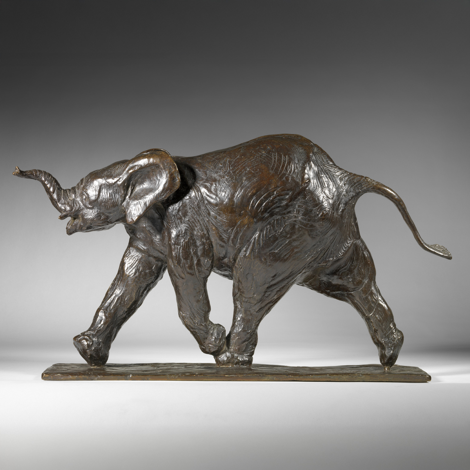 An unusual mid nineteenth ceuntry fine quality bronze model of a ‘Tazza’, entitled ‘Tazza with Vines, Cat Mask and Owl’ by Antoine-Louis Barye (French, 1796-1875). This bronze is cold stamped ‘Barye’ and has a gold and black patina.