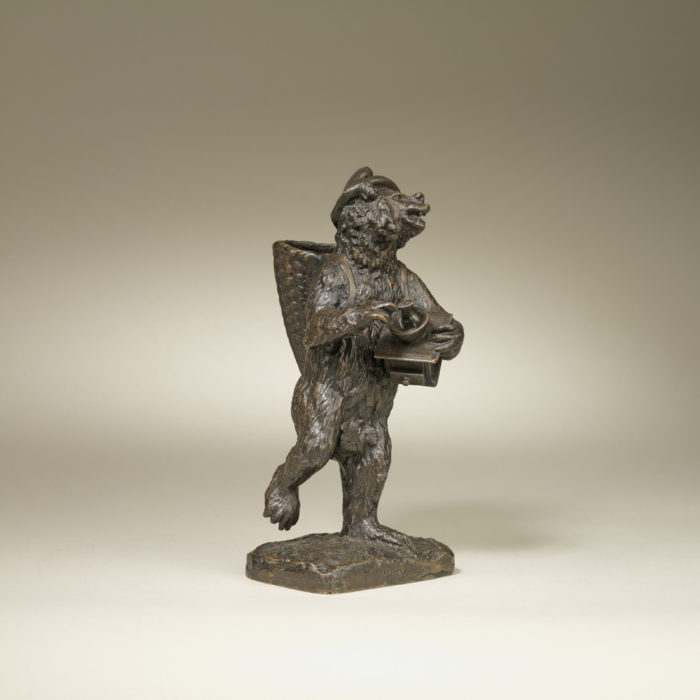 A fine quality, nineteenth century bronze model of a ‘Bear with a Coffee Grinder and Backpack Basket’ by Christophe Fratin, (French, 1801-1864). This bronze is signed ‘FRATIN’ and has a dark brown patina with golden highlights.