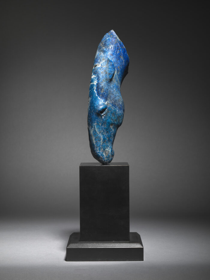 ‘A unique contemporary sculpture hand-carved from Lapis Lazuli of a Horse’s Head entitled ‘Blade, 2022’ by Nic Fiddian Green (English b. 1963).