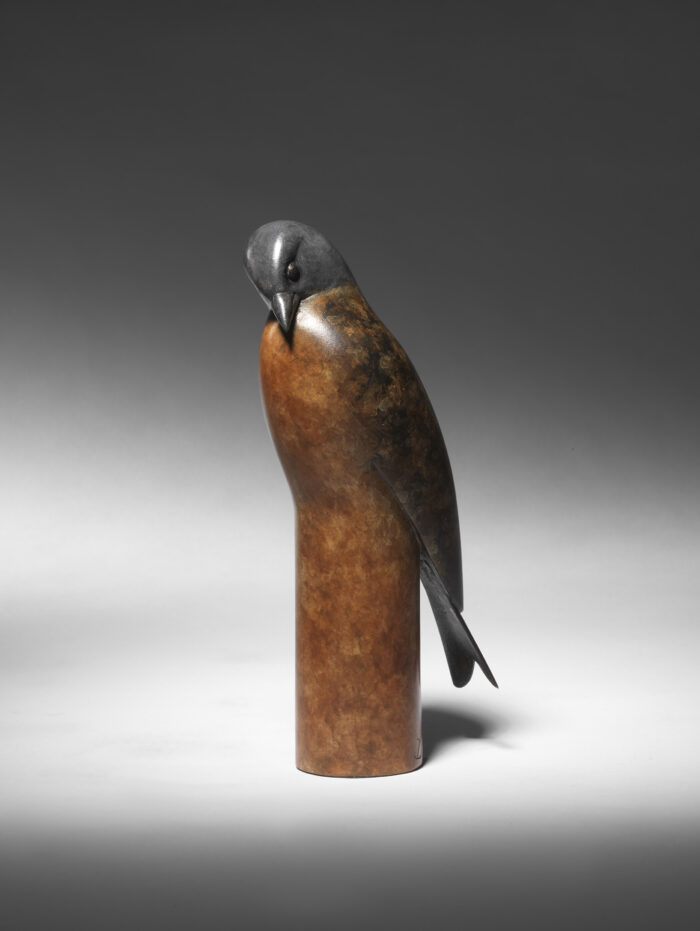 A fine quality, contemporary bronze model of a ‘Brambling’, 2019 by Geoffrey Dashwood, (British, b. 1947). This bronze is from an edition of 15, is signed ‘Dashwood’ and has a mottled brown and grey patina.