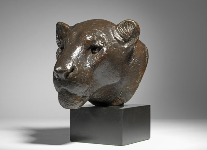 An early twentieth century bronze model of a ‘Bust of a Panther’ by Georges Lucien Guyot (French,1885-1973). This sculpture was cast in bronze by the lost wax process at the Susse Freres Foundry, Paris. Before casting it was signed and inscribed in the wax: ‘Guyot’, ‘BRONZE Susse Frs Fondrs, Paris’ and ‘cire perdue’. It has a rich reddy-brown patina with golden undertones.