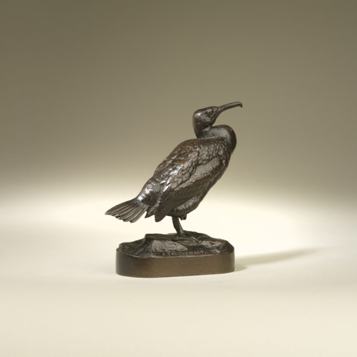 A rare, fine quality, nineteenth century bronze model of a ‘Cormorant’ by Alfred Jacquemart (French, 1824-1896). This bronze, signed ‘A. Jacquemart’, has a medium brown patina with lighter gold highlights.