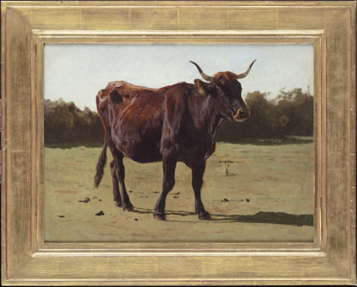 A fine quality, nineteenth century oil painting of a ‘Cow in a Meadow’ by Auguste Bonheur (French, 1824-1884). This painting is mounted in its original wooden gilt frame.