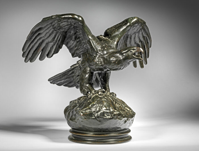 A good quality nineteenth century bronze model of an ‘Eagle with its Wings Outstretched’ by Antoine-Louis Barye, French (1796-1875). This bronze was produced using the sand-casting process, Paris. It is signed ‘Barye’ and has a black patina with green and brown undertones.