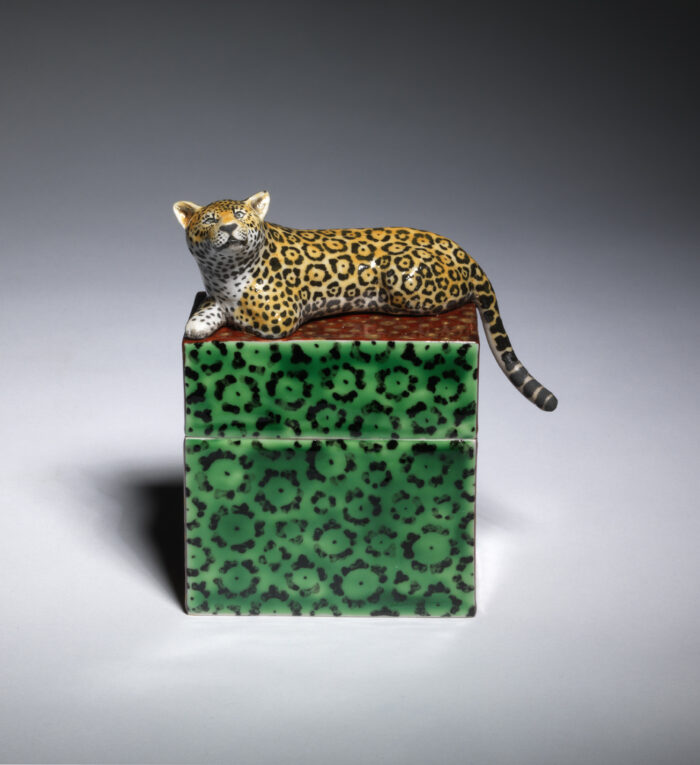 An original, unique, contemporary ceramic sculpture entitled ‘Elegant Panther’ by Kensuke Fujiyoshi (Japanese, b.1966). This porcelain sculpture is hand painted and glazed, made in 2021 by Kensuke Fujiyoshi at his studio and kiln, Fukuoka, Japan.