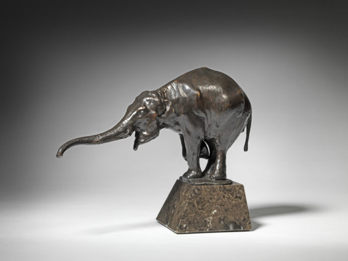 A fine quality, early twentieth century bronze model of an elephant entitled ‘Elephant Blanc d’Asie mendiant’ by Rembrandt Bugatti (Italian, 1884-1916). This bronze was cast using the lost wax process at the Hébrard foundry. Prior to casting in bronze, it was signed and stamped in the wax. It has a warm brown patina with golden undertones.
