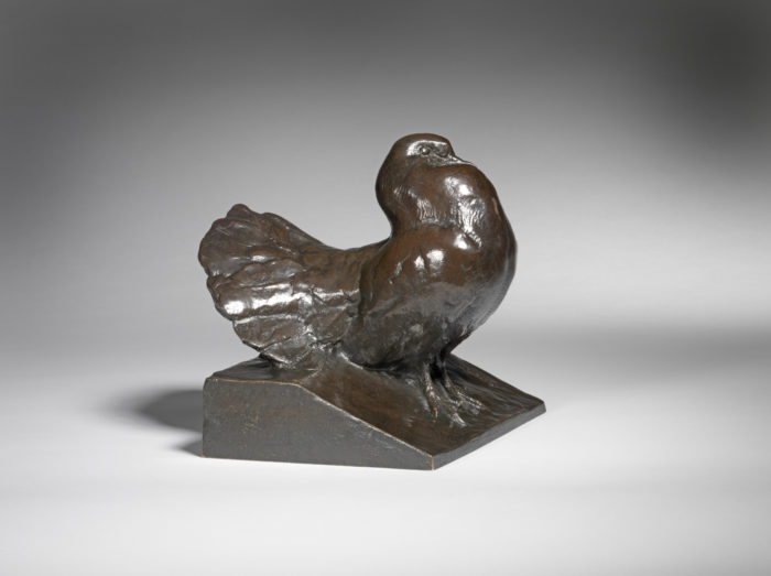 A good quality, early twentieth century bronze model of a ‘Fantail Pigeon’ by Roger Godchaux (French, 1878-1958). This bronze was produced using the lost wax process. Prior to casting it was signed ‘Roger Godchaux’ in the wax and has a brown patina with red and black undertones.