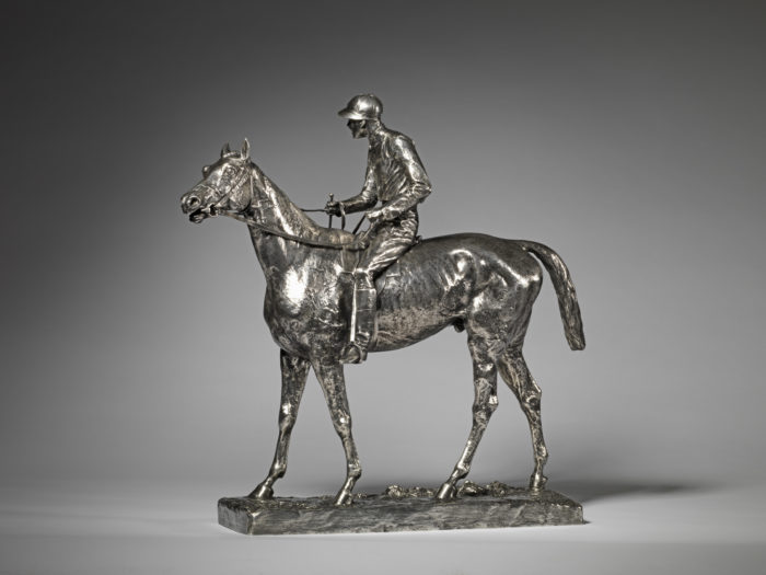 A fine quality, early twentieth century, silvered bronze model of a Horse and Jockey entitles ‘Fred Archer on Ormonde’ by Adrian Jones (British, 1845-1938). It is signed ‘Adrian Jones’, inscribed under the base and has a silvered bronze patina.