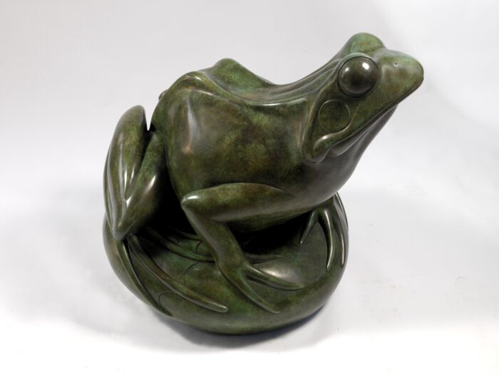 A fine quality, contemporary bronze model of a ‘Frog’ by Geoffrey Dashwood, (British, b. 1947). This monumental bronze, from an edition of 12, is signed ‘Dashwood’ and has a green patina with brown undertones.