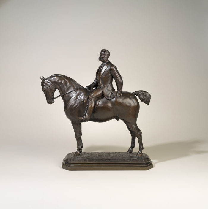 A fine quality, mid-nineteenth century bronze model of a ‘Gentleman on Horseback’- a portrait of George Whyte-Melville by Joseph Edgar Boehm (English, 1834-1890). This bronze was cast in England, is signed by the artist and has a medium brown patina with black undertones.