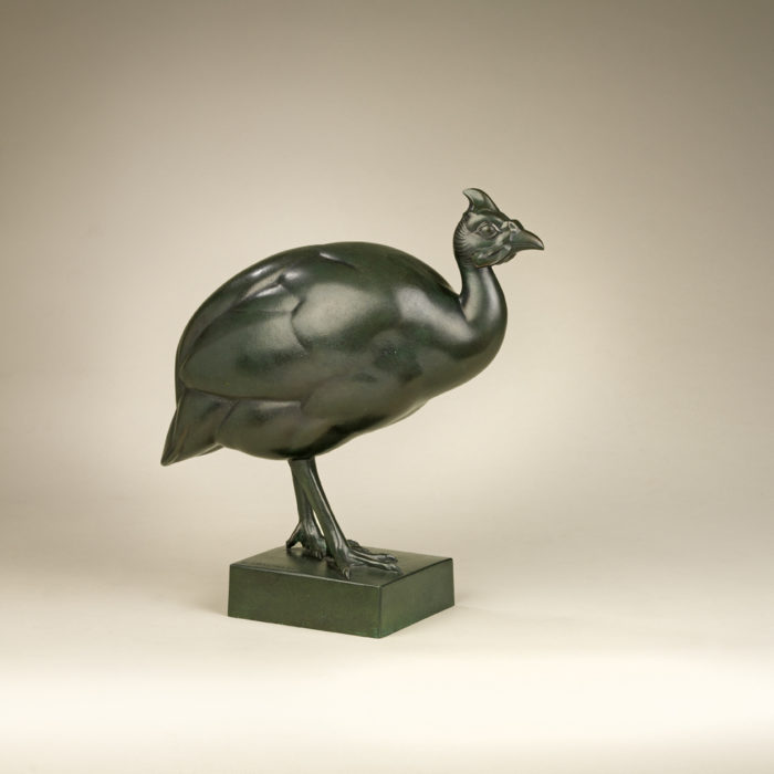 A fine quality twentieth century bronze model of a ‘Guinea Fowl’ by E. J. Bachelet (French, 1892 – 1981). This bronze, signed by the artist ‘E. J. Bachelet’ has a green patina with reddy brown highlights.