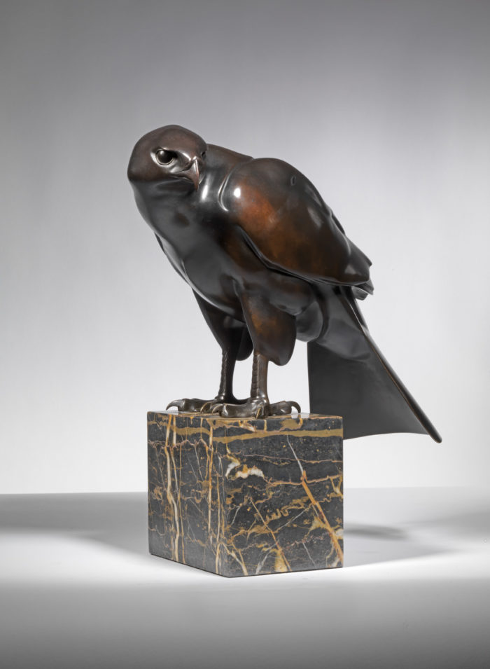 A fine quality, early twentieth century bronze model of a ‘Hawk’ by Wilhelm Krieger (German, 1877-1945). This bronze was produced at the Reiter foundry in Munich. It is signed and inscribed ‘Nach Krieger’, ‘Reiter Munchen’ and has a brown patina with lighter brown undertones.