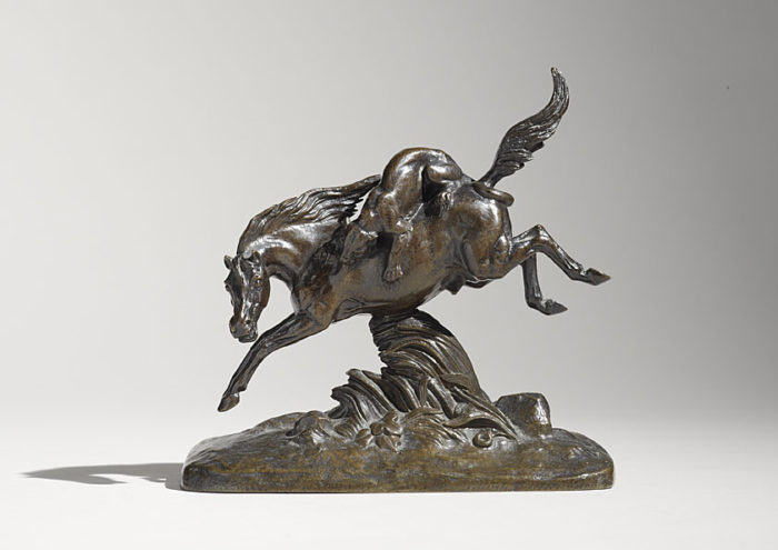 A good quality, nineteenth century bronze model of a ‘Horse and Puma’ by Jean-Francois-Theodore Gechter (French, 1796 – 1844). This bronze was produced using the sand casting process and is signed faintly on the base. It has a dark brown patina.