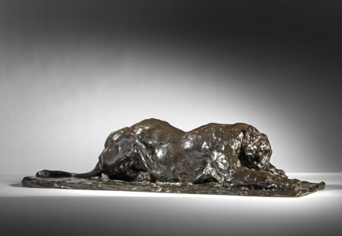 A rare, fine quality early twentieth century bronze model of a ‘Lioness Eating’ by Rembrandt Bugatti (Italian 1884-1916). This sculpture was cast using the lost wax process at the Hébrard Foundry, Paris. Before casting it was signed and stamped in the wax. This cast has a rich dark brown patina with reddy brown undertones.