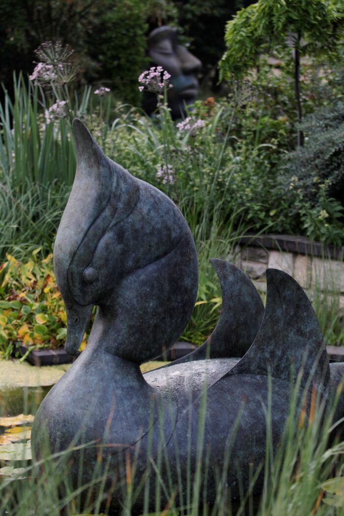 A fine quality, contemporary bronze model of a ‘Mandarin Duck’ by Geoffrey Dashwood, (British, b. 1947). This monumental bronze, from an edition of 6, is signed ‘Dashwood’ and has a mottled green and black patina.