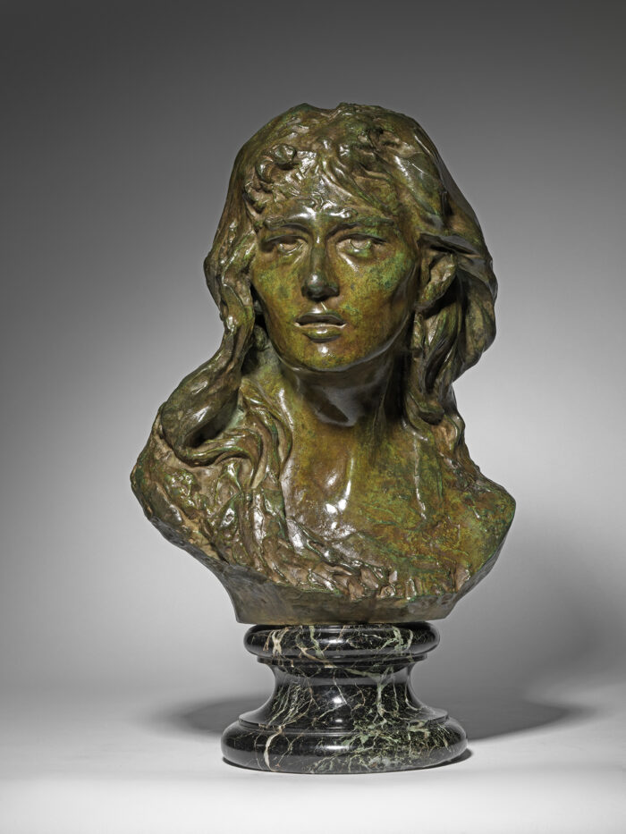 A fine quality, rare, twentieth century bronze model of Rose Beuret entitled ‘Mignon’ by Auguste Rodin (French, 1840-1917). This bronze was produced by the sand cast process at the Alexis Rudier Foundry, Paris. It is signed ‘A. Rodin’, inscribed ‘Alexis Rudier Fondeur Paris’ and has a dark brown patina with green undertones.