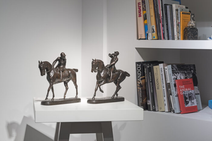 A fine quality, nineteenth century bronze pair of huntsmen entitled ‘Hallo and Gone Away’ by John Willis Good (English, 1845-1879). These bronzes are signed ‘J. Willis Good’ and have a dark brown patina.