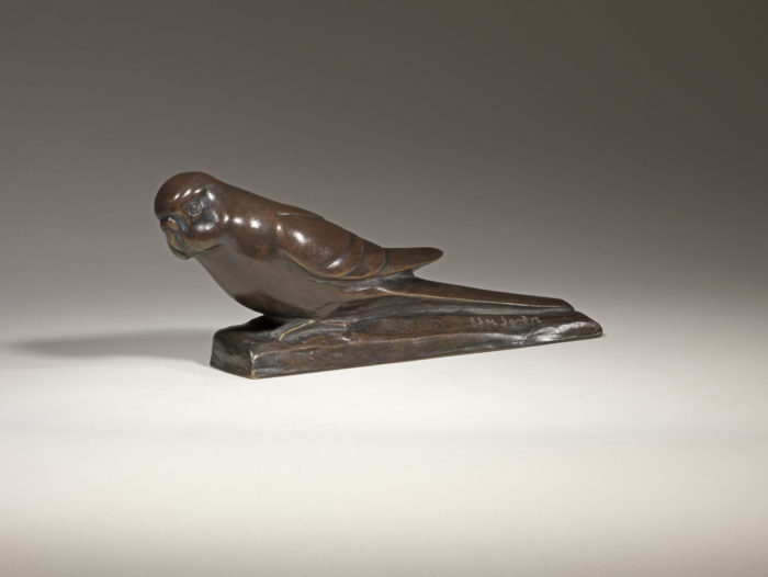 A good quality, twentieth century bronze model of a ‘Parakeet’ by Edouard-Marcel Sandoz (Swiss, 1880-1971). This sculpture was cast in bronze by the lost wax process at the Susse Freres Foundry, Paris, France. Before casting it was signed and stamped in the wax. This cast has a warm brown patina with reddy brown highlights.