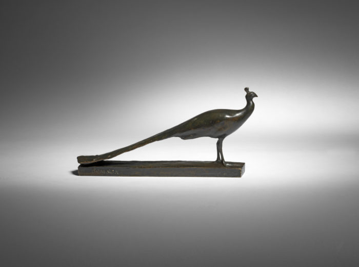 A fine quality, early twentieth century, bronze model of a ‘Peacock’ by Francois Pompon (French, 1855 – 1933). This sculpture was cast in bronze by the lost wax process at the Hébrard, Foundry Paris. Before casting, it was signed, numbered and stamped in the wax. This example has a dark brown patina with golden undertones.