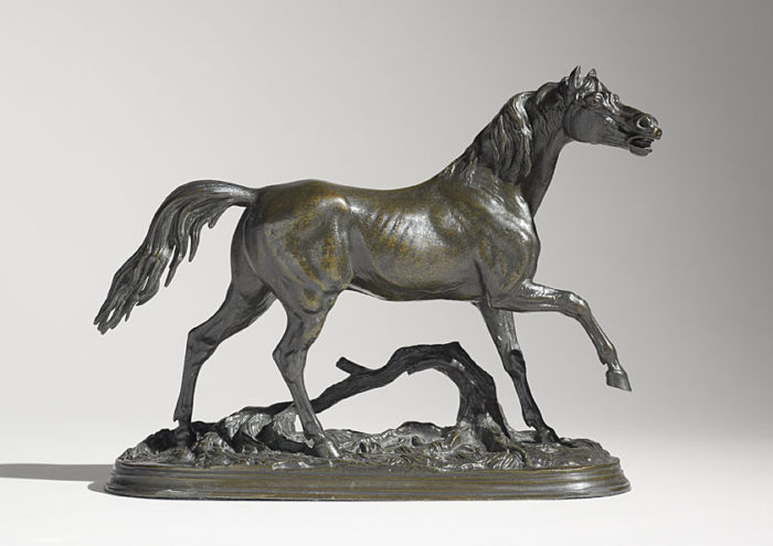 A good quality, nineteenth century bronze model of a ‘Prancing Stallion’ by Jules Moigniez (French, 1835 – 1894). This bronze was produced using the sand casting process. It is signed ‘J. Moigniez’ and has a brown patina with golden undertones.