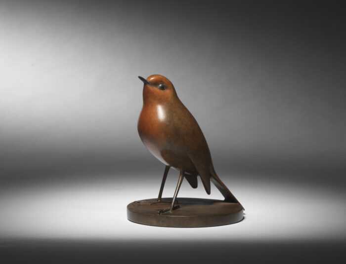 A fine quality, contemporary bronze model of a ‘Robin’, 2016 by Geoffrey Dashwood, (British, b. 1947). This bronze is from an edition of 24, is signed ‘Dashwood’ and has a mottled brown patina with red detail.