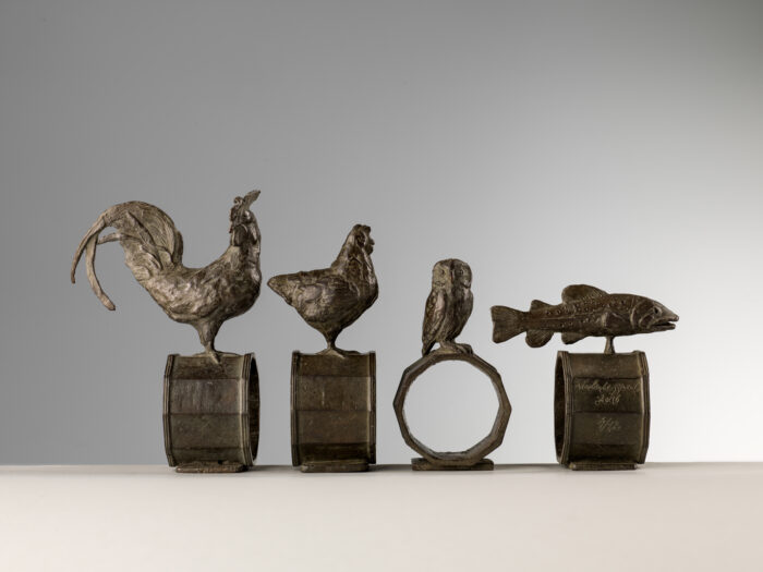 Cockerel: H:5” W:3.5” D:2” (H:12.5 W:9 D:5 cm)