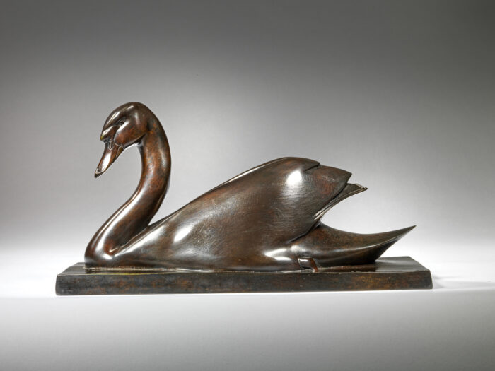 A fine quality, early twentieth century bronze model of a ‘Swan’ by Charles-Joseph Artus (French, 1897-1978). This bronze was produced using the lost wax casting method at the Claude Valsuani Foundry, Paris. Prior to casting it was signed and inscribed ‘C H Artus’, ‘C Valsuani Cire Perdue’ and has the artist’s monogram. It has a brown patina with black undertones.