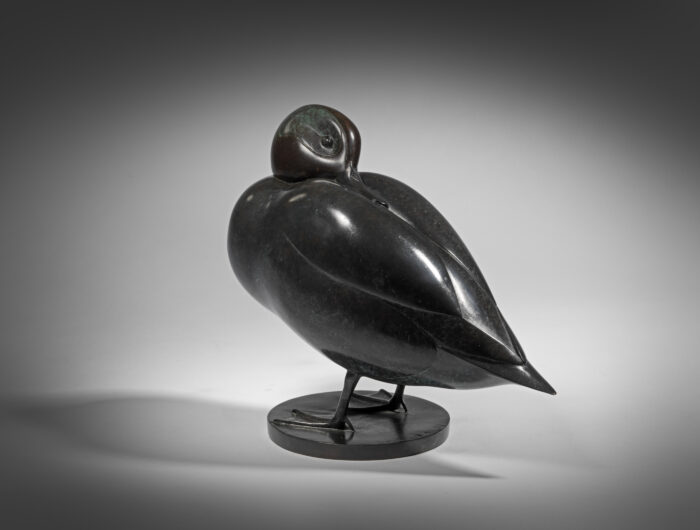 A fine quality, contemporary bronze model of a Teal Duck entitled ‘Teal II’ by Geoffrey Dashwood, (British, b. 1947). This bronze was produced at the Pangolin foundry. It has a black patina with dark green undertones and a mottled green detail around the head of the bird.