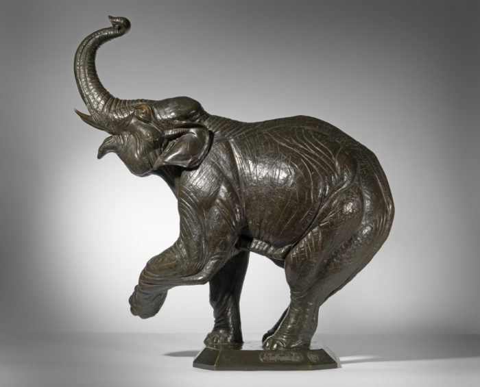A fine quality, early twentieth century bronze of an ‘Elephant’ by Sirio Tofanari (Italian, 1886 – 1969). This work is signed ‘S Tofanari’ and has a dark brown patina with golden undertones.