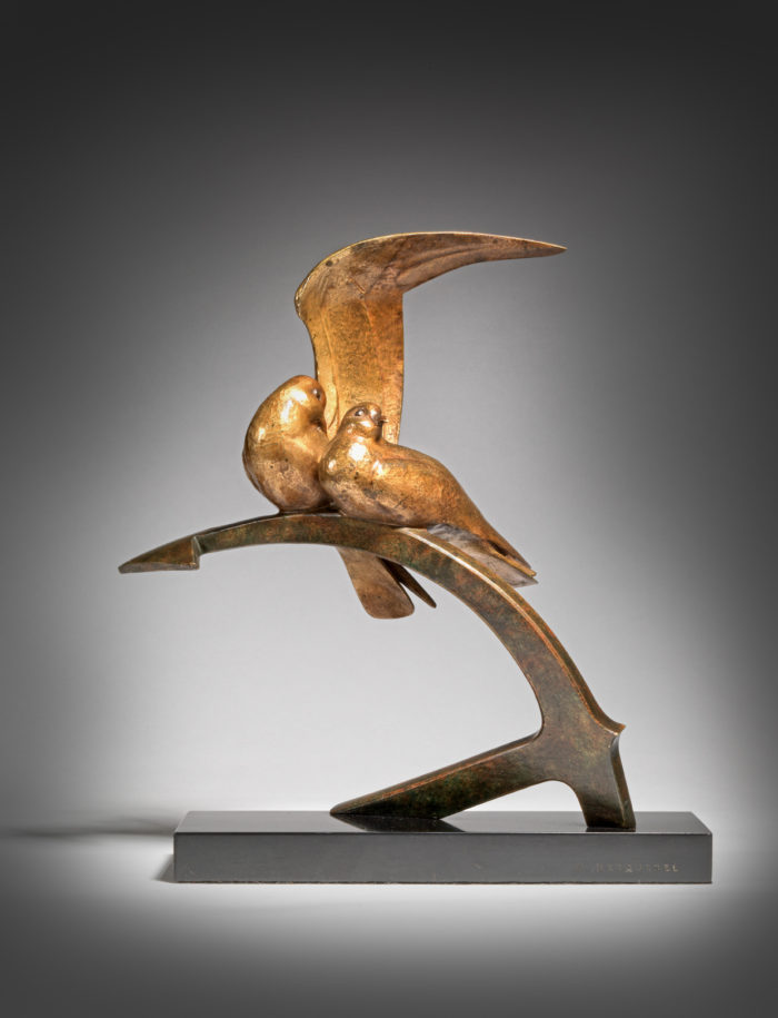 A good quality, early twentieth century bronze model of ‘Two birds on an Anchor’ by Andre Vincent Becquerel (French, 1893-1981). This bronze is signed and has a brown patina with golden highlights and is mounted on a black marble base.