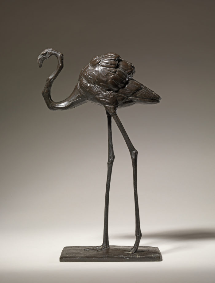 A rare, fine quality, early twentieth century bronze model of a ‘Walking Flamingo ‘ by Rembrandt Bugatti (Italian, 1884-1916). This bronze was cast by the lost wax process at the Hébrard Foundry, Paris. Prior to casting it was signed, numbered and stamped in the wax ‘R. Bugatti. This cast has a rich dark brown patina with golden highlights.