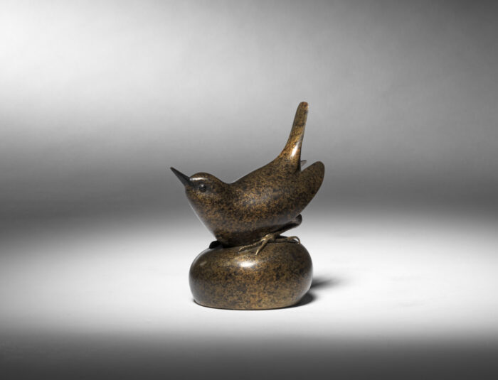 A fine quality, contemporary bronze model of a ‘Wren’, 2017 by Geoffrey Dashwood, (British, b. 1947). This bronze is from an edition of 50, is signed ‘Dashwood’ and has a mottled golden brown and black patina.