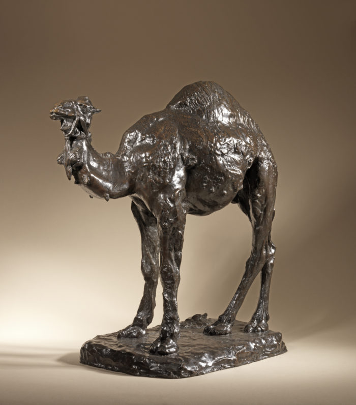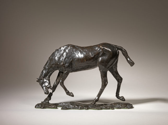 The pieces featured in the exhibition span two centuries including works by Antoine-Louis Barye, Joseph Bernard, Rembrandt Bugatti, Albéric Collin, Geoffrey Dashwood, Edgar Degas, Emile Antoine Bourdelle, Aristide Maillol and Auguste Rodin amongst others. Highlights include Degas’s ‘Cheval faisant une descente de main, 1865-1881’, a rare, equine study which depicts a horse with its head lowered, possibly representing a spirited horse freed from its stall to pasture. This important work was loaned to the Yun Contemporary Art Centre in Shanghai, China. Also included are Rembrandt Bugatti’s delicate depiction of ‘Two Antelopes 1911’ a bronze loaned to the Mullin Automotive Museum, California for an important retrospective of the Bugatti family; Jules Dalou’s ‘Workers’, a series of sketches depicting labourers and agricultural workers which he produced for a proposed Monument to the Workers, loaned to the Lightbox, Surrey; and Auguste Rodin’s famous set of the ‘Burghers of Calais’ which are currently part of a major exhibition focusing on Impressionism in Sculpture at the Staedel Museum, in Frankfurt.