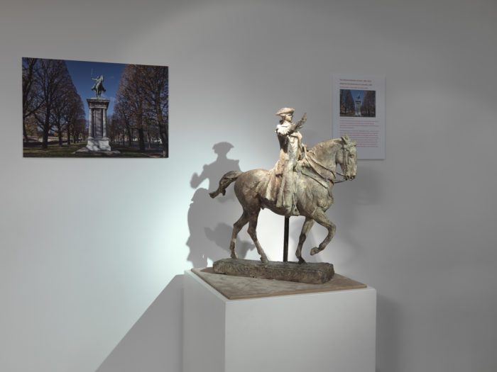 In this, the centenary year of Rodin’s death, there have already been many exhibitions and this renewed focus has highlighted the enormous influence that he had on his immediate contemporaries and indeed successive generations. We have used Rodin as our starting point in this show, further highlighting the inspiration he provided to his fellow sculptors. We acknowledge that it is in the area of monuments and public art, that his new approach was particularly radical, and, in some cases, for example the monument to Balzac, too radical, even for those he was working for. Rodin’s Balzac was finally unveiled in 1939, 22 years after the sculptor’s death and nearly 50 years after the original commission. Today it is acknowledged as one of his masterpieces and has been called the first piece of modern sculpture.