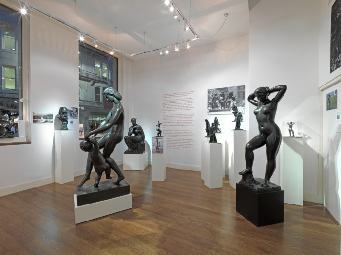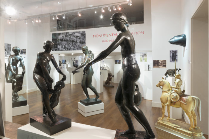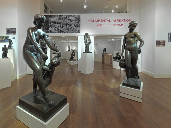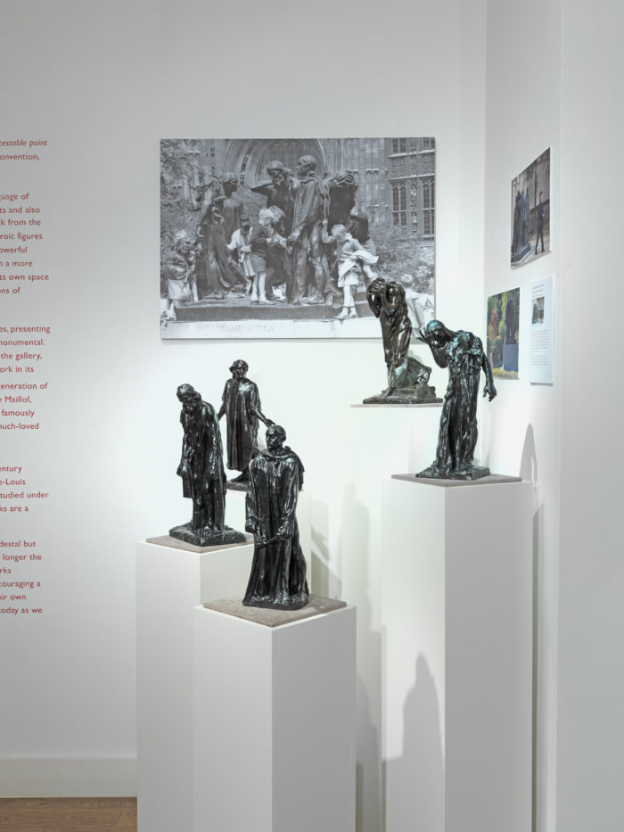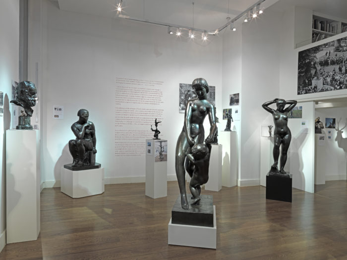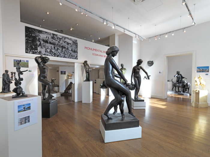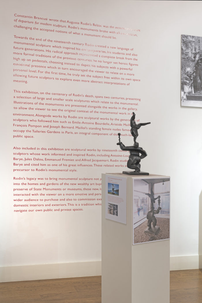 This exhibition, on the centenary of Rodin’s death, spans two centuries, presenting a selection of large and smaller scale sculptures which relate to the monumental. Illustrations of the monuments are presented alongside the works in the gallery, to allow the viewer to see the original context of the monumental work in its environment. Alongside works by Rodin are sculptural works by the generation of sculptors who followed him such as Emile-Antoine Bourdelle, Aristide Maillol, François Pompon and Joseph Bernard. Maillol’s standing female nudes famously occupy the Tuileries Gardens in Paris, an integral component of this much-loved public space.