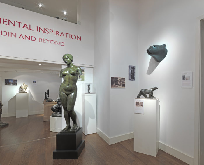 Also included in this exhibition are sculptural works by nineteenth century sculptors whose work informed and inspired Rodin, including Antoine-Louis Barye, Jules Dalou, Emmanuel Fremiet and Alfred Jacquemart. Rodin studied under Barye and cited him as one of his great influences. These related works are a precursor to Rodin’s monumental style.