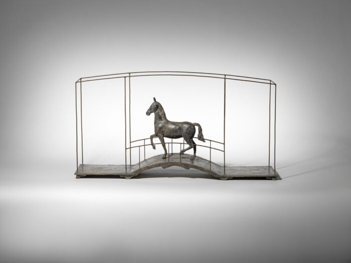 Trained as a painter and a sculptor Nicola fashions unusual narrative sculptures of a rare complexity and beauty. He incorporates self-portraits in many of the works, which have something of a renaissance quality to them, yet borrow also from Giacometti and other modern masters. Charming, intriguing, witty and exquisitely sculpted his bronzes have a keen international following. His “Boatman” fetched a record price at the Keeneland auction in Kentucky in 2014.