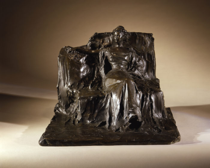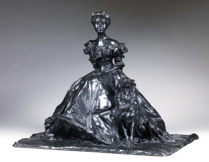 Another impressive character of the time, captured by Troubetzkoy is Madame Décori. She hosted one of the most prominent salons in Paris, receiving intellectuals, politicians and journalists. Widely considered to be one of the most fascinating women of her day, she had an affair with the minister Raymond Poincaré and was the talk of Paris. One of the most successful and original innovations in Troubetzkoy’s sculpture is his use of props to create a spatial setting for his figures. The simple device of placing the sitter in a chair has the effect of drawing in the viewer, so much so that we feel as if we too were a part of her salon sharing with her a moment of intimacy.