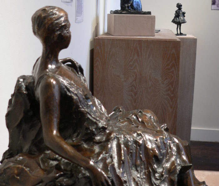 His bronze portrait of Lady Constance Stewart-Richardson, illustrates this perfectly. This aristocrat gained fame as an athlete and suffragette, and, after attending a performance by Isadora Duncan in 1909 she became an interpretative ballerina, adopting Duncan’s radical, free, expressive style. He depicted her performing, dancing barefoot and barely clad, for which she was renowned.
